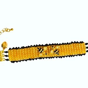 Hand crafted beaded bracelet bees in honeycomb with sparkling trim and charm