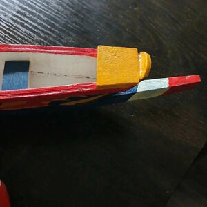 Hand crafted colorful boat with paddle..about 9 inches