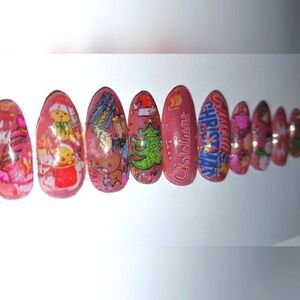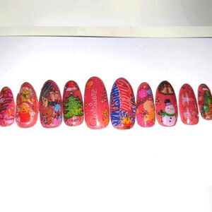 Hand crafted custom print 10pc short acrylic press on nails sz medium Buy 1 set