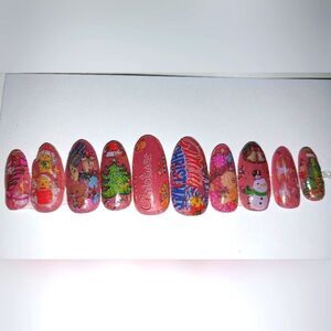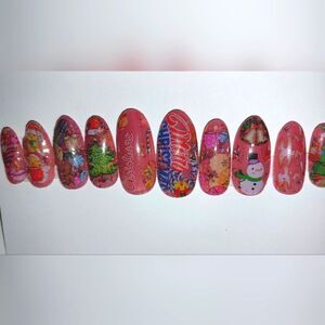 Hand crafted custom print 10pc short acrylic press on nails sz medium