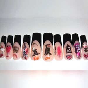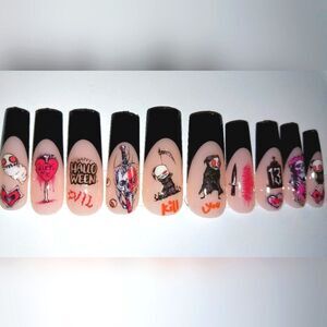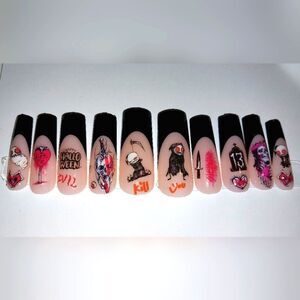 Hand crafted custom print 10pc short acrylic press on nails sz medium Buy 1 set