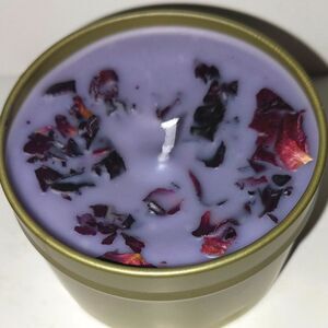 Hand crafted natural candles with all organic ingredients with no over powering scent. Zen out to our beautiful hand poured candles with lovely dried flowers to add to the aromatherapy experience. Small size Perfect for travel!