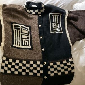 This is a hand crafted, thick knit/crochet, mid thigh beautiful Cardigan. It has Dolman or “Bat Wing “ sleeves. The shoulders are dropped. Shoulder pads are attached with Velcro. There are no Pockets. Although I have listed as a large , when purchased at a boutique, it was considered a “one size fits all”. I have included its length and width so a buyer can determine if the size would best suit them. The length from front collar to hem is 36 inches. Width across the bottom is 26 inches as measured in the front. It has had minimal wear - primarily used when dressing up. All original buttons and in very good shape.