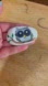 Hand crafted painted owl rock gray black blue white 3x1.5 inches approx big eyes