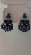 Hand crafted pierced post earrings red tiger eye stones blue seed beads