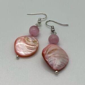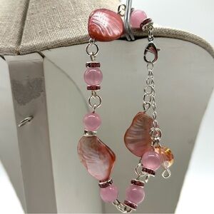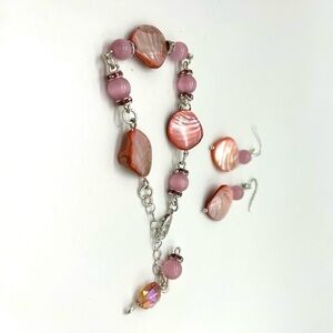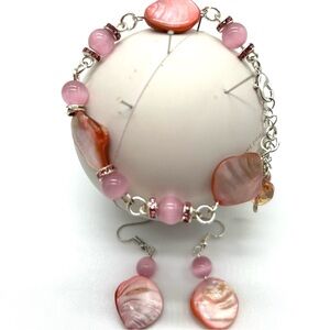 Hand crafted pink shell cat eyes and silver p wire Bracelet and earrings set.New