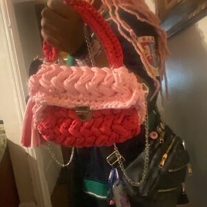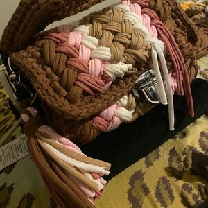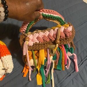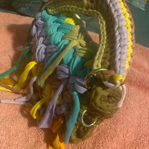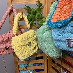 Trending T-shirt yarn crossbody bags. Individually designed for your taste. Detachable cross body chain included with each bag. Handmade Eye-catching color ways. Great for concerts and events. Will hold phone, keys and personal items for an evening out. Hand crocheted in brilliant and popular colors. These bags are cross-posted. Please message your selection before purchase. Will also customize your color choice. Thanks for shopping!