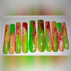 Hand crafted custom cateye 10pc xxl long acrylic press on nails sz large