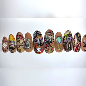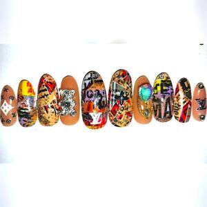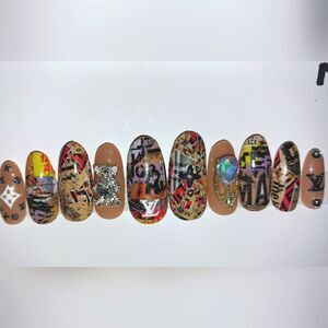 Hand crafted custom print 10pc short acrylic press on nails sz medium