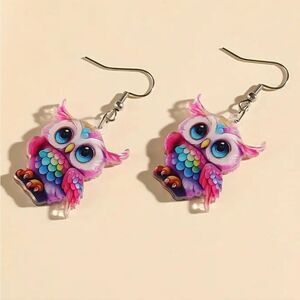 Sweeet And Colorful Owl Earrings: Perfect for Birthdays, Anniversaries, And Graduations - Acrylic, Stainless Steel Earwires
