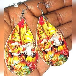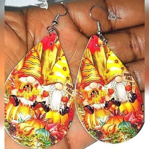 1 Pair, Fall Thanksgiving Gnome Earrings Reversible Pattern Faux Leather Women Earrings Hanging Lightweight Teardrop Earrings Fall Decor Thanksgiving Gifts