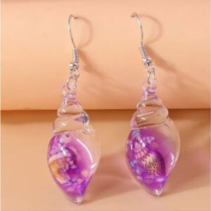 Glowing Seashell Earrings, Fashionable Creative Design, Transparent Shell Dangle Earrings With Luminous Resin, Cute Ocean Style Summer Beach Vacation Jewelry.