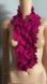 Hand crochet fuchsia sparkle lace scarf 40” length