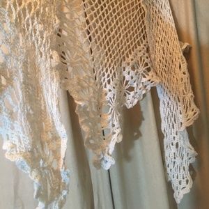 Hand crocheted acrylic triangular scarf/shawl with snowflake hem