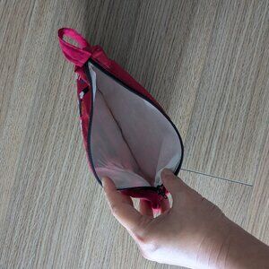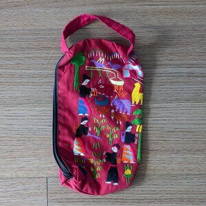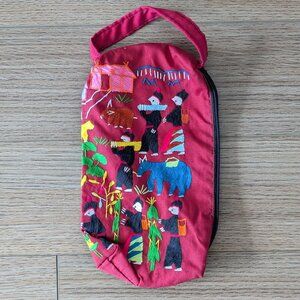 Hand embroidered Hmong northern Thailand red zip pouch with handle