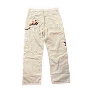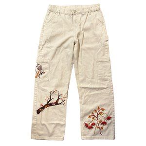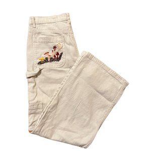 Hand embroidered mushroom white denim cargo pants