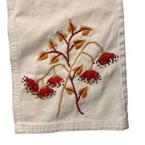 Pants are thrifted and embroidery added. Two front pockets, two back pockets, one side pocket, and hammer loop. Sturdy denim fabric.