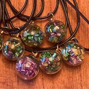I just finished these very cute and very unique glass pendants, measuring 22” with cord and pendant added together. One of a kind! Great for gifting or wearing!