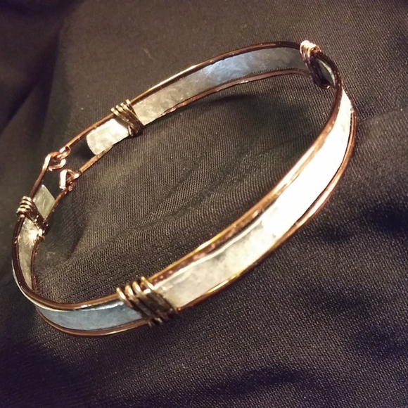 Handcrafted in New York. Hammered aluminum and Copper wire.