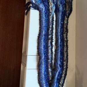 Beautiful muti yarn scarf. Great way to dress up with a fun, vibrant and textured scarf. Like new. From a smoke free and per free home.