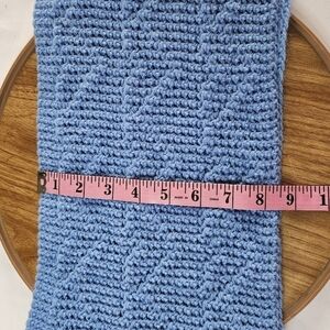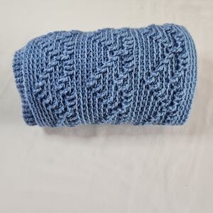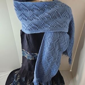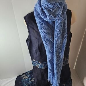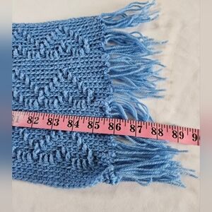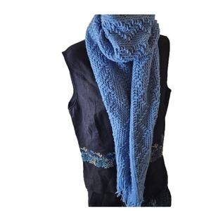 Hand knit scarves Crochet Blue Double cable stitch Triangular pattern with Tazel
