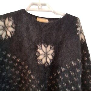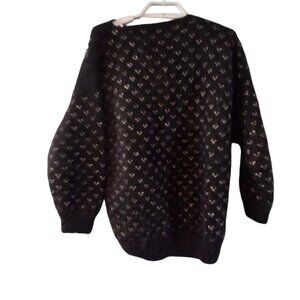 Hand knit sweater womens Large ? black mohair angora ? fuzzy pullover vintage