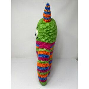 Hand knitted 17" plush alien Pride Rainbow body with horns