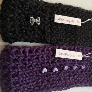 Bundle of 2 stretchy hand knitted headband, ear warmers or cute hair accessory with a little bead design.