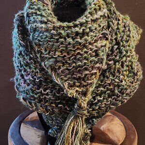 Wearable with many outfits, light and comfortable on your neck, you can tie it in front or wear it like a bandana. 5n in long and knitted in a round shape to fit on your shoulders if you wish.