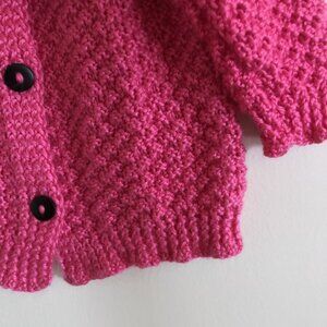 Nice hand knitted lightweight cardigan in pink and black color. Good to have around when your girl need an extra layer on breezy weather