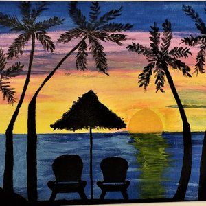 Beautiful hand made sunset painting made with acrylic paints on 8x10" canvas.