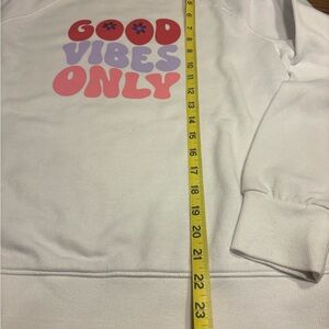 Hand made Small Good Vibes white sweatshirt like-new!!! (Runs XS-great for a tween!)