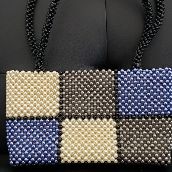 9"x 5" small bag. Beautiful hand beading. One of a kind (literally). Satin liner, zippered main pocket. Zippered coin pocket.