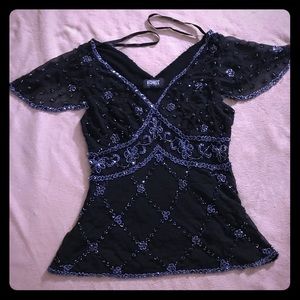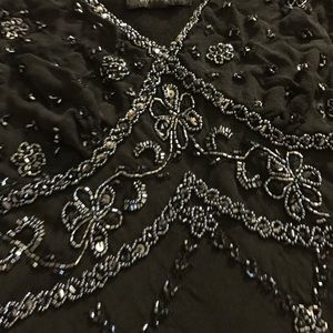 Hand beaded tailored to fit s/xs size frame with B/C chests and any shoulder type. All beads are firmly in place and in perfect condition. I wore it once for a photo shoot.