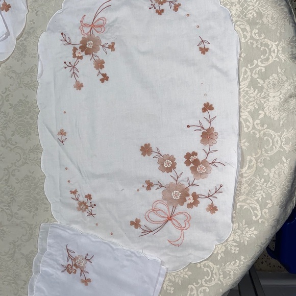 Super cute dinnerware this one brings its own platemat with its own napkin holder, they are 100% hand made, it can be washed by hand with cold water. Super cute for a special occasion✨ they are 4 sets and each set has its own napkin at a super affordable price