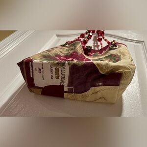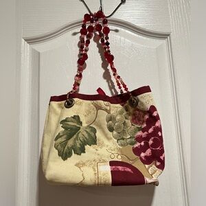 Hand made fabric purse wine/grape design with button closure. Beaded straps 10”. Bag measures 11” x 7” x 3.5”. Smoke free home.