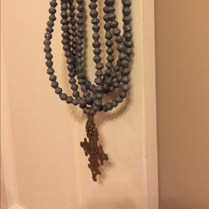 Hand made gray beaded necklace with cross