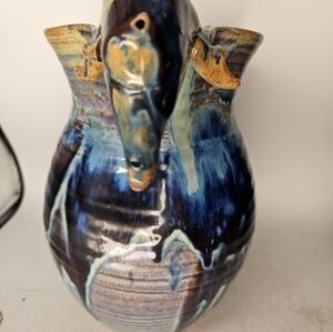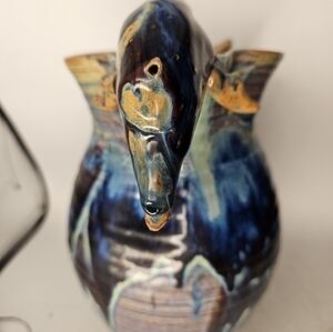 hand made, hand thrown art pottery pitcher. this pitcher was hand made, hand thrown and it is signed by the artist in the bottom. it has a beautiful glaze, and it is in pristine condition.
