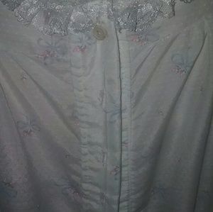 Size 22 ladies vintage style nightgown 44 inches across bust about 54 onchoes from shoulder to hem line trimmed at Nick line and both pockets are trimmed with lace along with the ruffle at the bottom is all trimmed with lace this item is new all hand made by myself buttons down the front