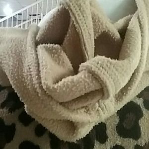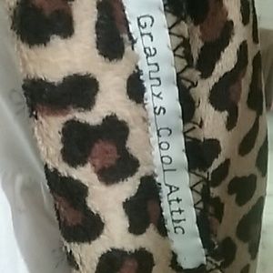 Hand made one size fits most lepored print fleece poncho with contrast hood has 3/4 sleeve length when worn and is about 30 inches from shoulder to hem line tues item is new and hand made by myself