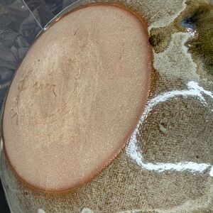 This is a heavy pottery handmade signed 10" square drip glaze plate/ platter in a beautiful variegated chocolate brown/moss green/taupe pattern in perfect condition with no flaws blemishes or visible wear
