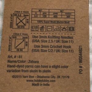 Hand made shawl Yarn bee’s Zaharia. Merino wool. Very soft yarn. Around 85 inches long. Usually hand washed, shape and lay flat to dry. Very beautiful!