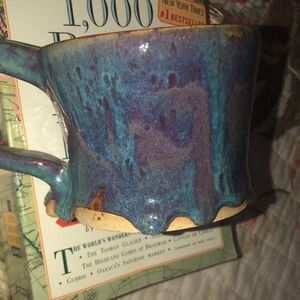 Hand made drip design sea foam teal mug
