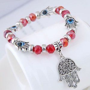 Silver hand of god/hamsa bracelet with red crystal beads Condition: New