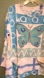 Hand painted Blue and White Butterfly Graphic Top possibly vintage