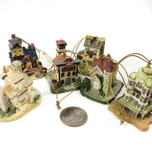 Hand painted Cold Cast Porcelain Miniature Ornaments Six Liberty Falls Buildings