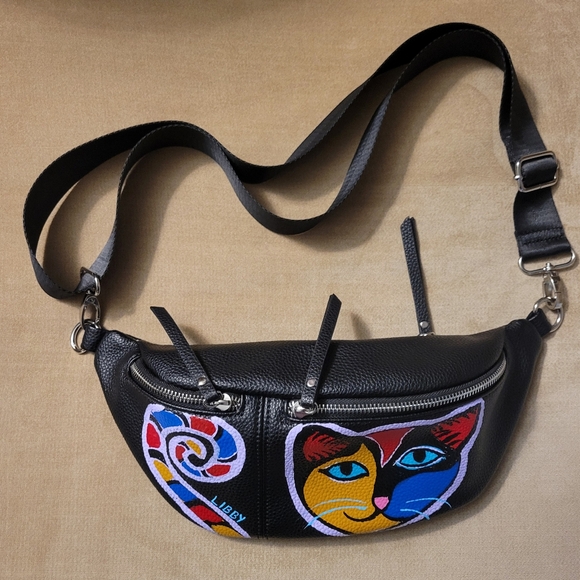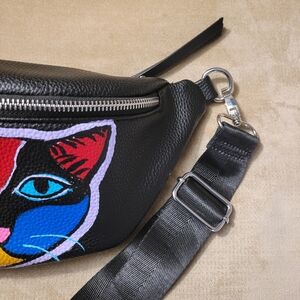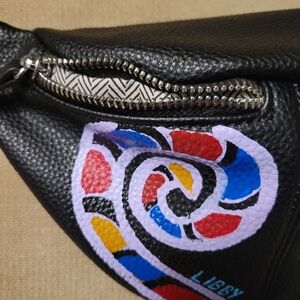 Hand painted by me using acrylic based leather quality paint. While the fanny pack is not new, previous owners likely never used or at least it doesn't look that way.