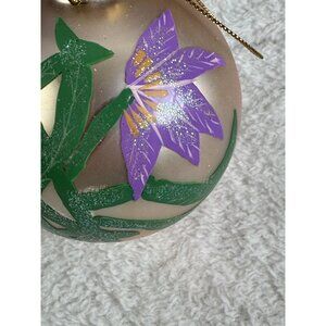 Hand painted Floral Glass Christmas Ornament Purple Gold Vtg Large Artist