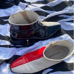 Hand painted Jeffrey Campbell white leather “hemlock” block heeled booties