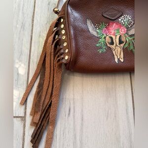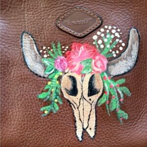Hand painted Longhorn Genuine Leather Isanti Crossbody Bag Western Boho …
